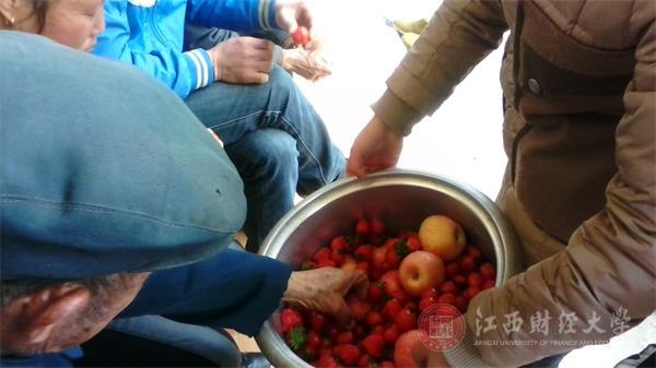 下午两点,志愿者在青协委员组织下从江西财经大学蛟桥校区出发,经历了一个小时的车程来到了蛟桥镇敬老院。当志愿者们带着小红帽,怀着激动的心情走进敬老院时,年轻的女院长热情地接待了他们,并对全体同学表达了诚挚的谢意。在志愿者们把带来的水果、糕点等慰问品分发给每位老人之后,全体同学进行了明确的分工,有的同学主动地拿起了扫把、抹布,帮助老人整理房间和打扫庭院;有的同学则和老人亲切的交谈,认真地倾听老人的烦恼;还有的同学拿出象棋和老人切磋棋艺……敬老院里顿时充满了欢声笑语。
