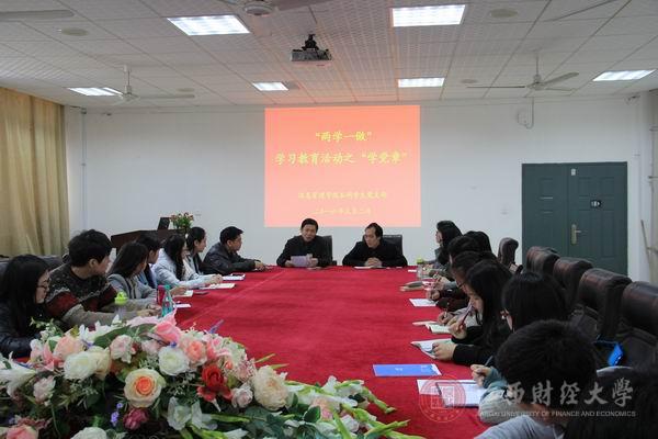 近日,中共中央办公厅印发了《关于在全体党员中开展“学党章党规、学系列讲话,做合格党员”学习教育方案》,为积极响应党中央号召,新学期伊始,信息管理学院党委分别于3月2日上午组织研究生党支部和中午组织本科生党支部全体党员集中学习文件,对开展“两学一做”学习教育提前热身,统一思想,进行部署,并在自学的基础上,集中开展学党章活动。院党委书记邹春发、党委副书记肖建文参加了会议。
