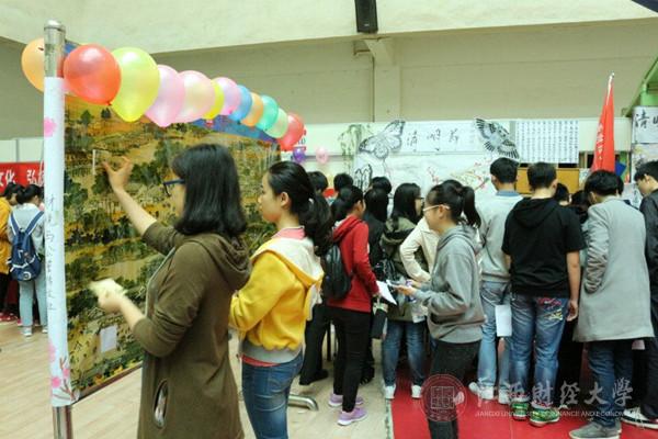 开幕式上一支古色古香的舞蹈点燃了大家的热情,表演者身着华服伴随着款款的舞步将同学们带入那遥远的阡陌交通,鸡犬相闻的时代。更吸引众人视线的是清明节来源展板,详尽的介绍了清明节的起源及发展创新和各地不同的风俗习惯,同时配以部分图片展示,由穿着古风服装的工作人员专门负责讲解。清明节书法绘画长廊展示也是此次活动的一大特色,文化长廊的造型别出心裁,在两顶帐篷之间悬挂4到6张有关清明节的诗词书法,绘画作品展示,构建一个类似屏风一样的文化长廊,让人赏心悦目。