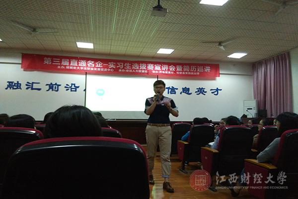 本次宣讲会只是“直通名企——实习上选拔赛”系列活动的开端,一份优秀的简历会率先使自己受到招聘方的认可和关注。此次宣讲会旨在提高学生的自我评价与认知能力,拉近用人单位与在校大学生之间的距离,促进大学生求职能力的提升,最终成为一名合格的“求职者”。(图文/信息管理学院 编辑/姜莹)