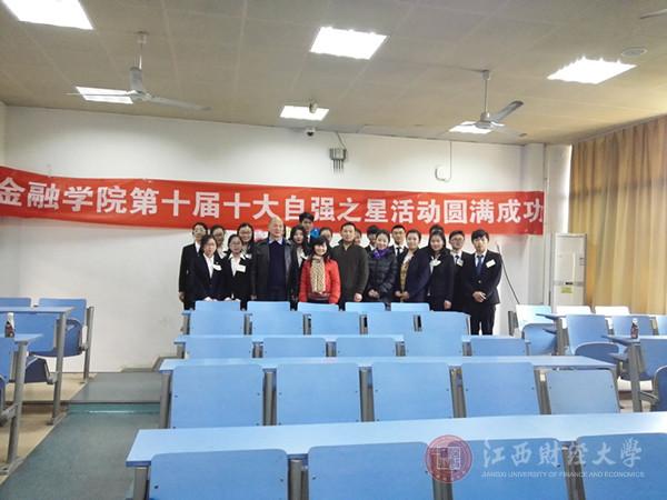 天行健,君子以自强不息;地势坤,君子以厚德载物。为树立金融学子志存高远,自立自强,坚定信念的目标,3月25日,金融勤工部与助贷部合办的“十大自强之星”活动在蛟桥园南区1103隆重举行。金融学院党委书记胡建国,党委副书记涂远武,副院长刘菊华,正科级辅导员周洪,分团委书记张毅,辅导员苑珺以及各班班主任,学院学生会干部及各级同学们参加了此次活动。