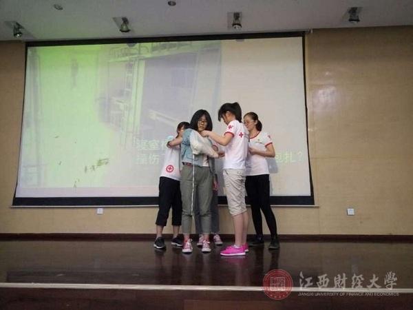 为纪念第69个世界红十字日,贯彻落实省市文件精神要求,5月7日下午,江西财经大学红十字会学生分会在大学生活动中心开展以“弘扬红十字精神,传递人道的力量”为主题的“五八”博爱周系列活动之第八届急救知识竞赛决赛。省红字会培训中心雷邵敏老师、郑毅强老师,体育学院严伟老师,各队参赛选手及红会会员参加了这次活动。