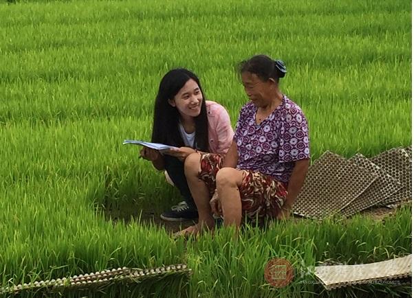 发展绿色经济是不是可以依靠生态补偿呢?带着了解鄱阳县生态补偿现状的目的,队员们前往鄱阳县的农业大镇——饶丰镇进行了入户访谈。当天正是当地农忙的时刻,队员们走下田野,与正在工作的农户们面对面交谈。当地的人们不仅和同学们分享了耕种的成本收益等问题,也让在钢筋水泥中长大的同学们了解到了水稻的基本种植过程。“我可以看见奶奶的汗直接滴在稻谷上,但是他们看着稻子的表情感觉还是好幸福,他们看着我们也向看着他们的孩子一样,好喜欢这种感觉。”一位下乡队员在采访完一位晒谷子的奶奶后说道。