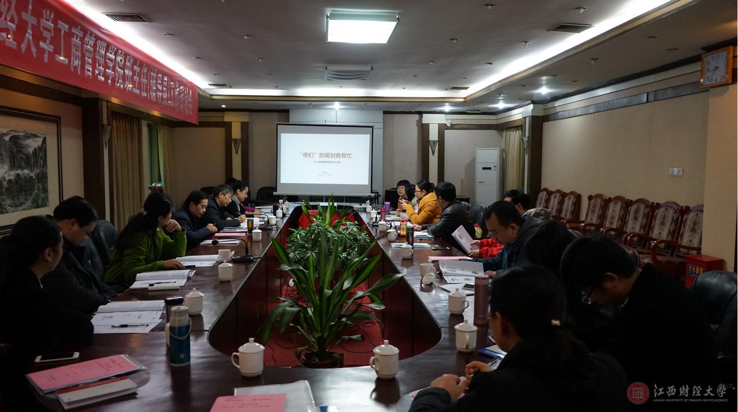 为引导大学生做好职业规划,提升大学生就业能力,充分发挥班主任、辅导员在大学生生涯教育指导作用。1月9日,工商管理学院召开了主题为“如何引导大学生做好职业规划,促进大学生更好就业”的工作研讨会,院党委书记熊绍辉、副书记黄雨虹、副院长胡海波、邹艳芬以及班主任、辅导员共20余人参加了此次会议。校学工处处长郑赟、大学生职业发展促进中心主任朱海琴、学工处学生资助中心副主任黄应足应邀出席。会议由黄雨虹副书记主持。