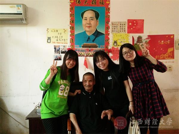 敬老院的十二位老人中,有一位老爷爷是毛主席的忠实粉丝,他依旧满腔热忱地为志愿者们讲了很多关于毛主席的故事;一位九十岁高寿的老奶奶虽然说话很困难,但仍然坚持和志愿者们交谈,讲述她小时候的故事,志愿者们都深受感触。大概两个小时后,志愿服务也接近尾声,志愿者们与老人合影留念,老人们的脸上都露出了灿烂的笑容。
